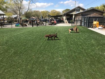Pet grass is amazing for your home but not limited to just there. Palmetto Moon Synthetic Turf has installed dog parks for municipalities, veterinarian offices, hotels and apartment complexes, doggie daycare facilities and yes, even bars. Artificial turf minimizes the breeding ground for bacteria often found in mulched or sodded dog areas. Your dogs remain clean and healthy when you get them back from pet grass facilities.
